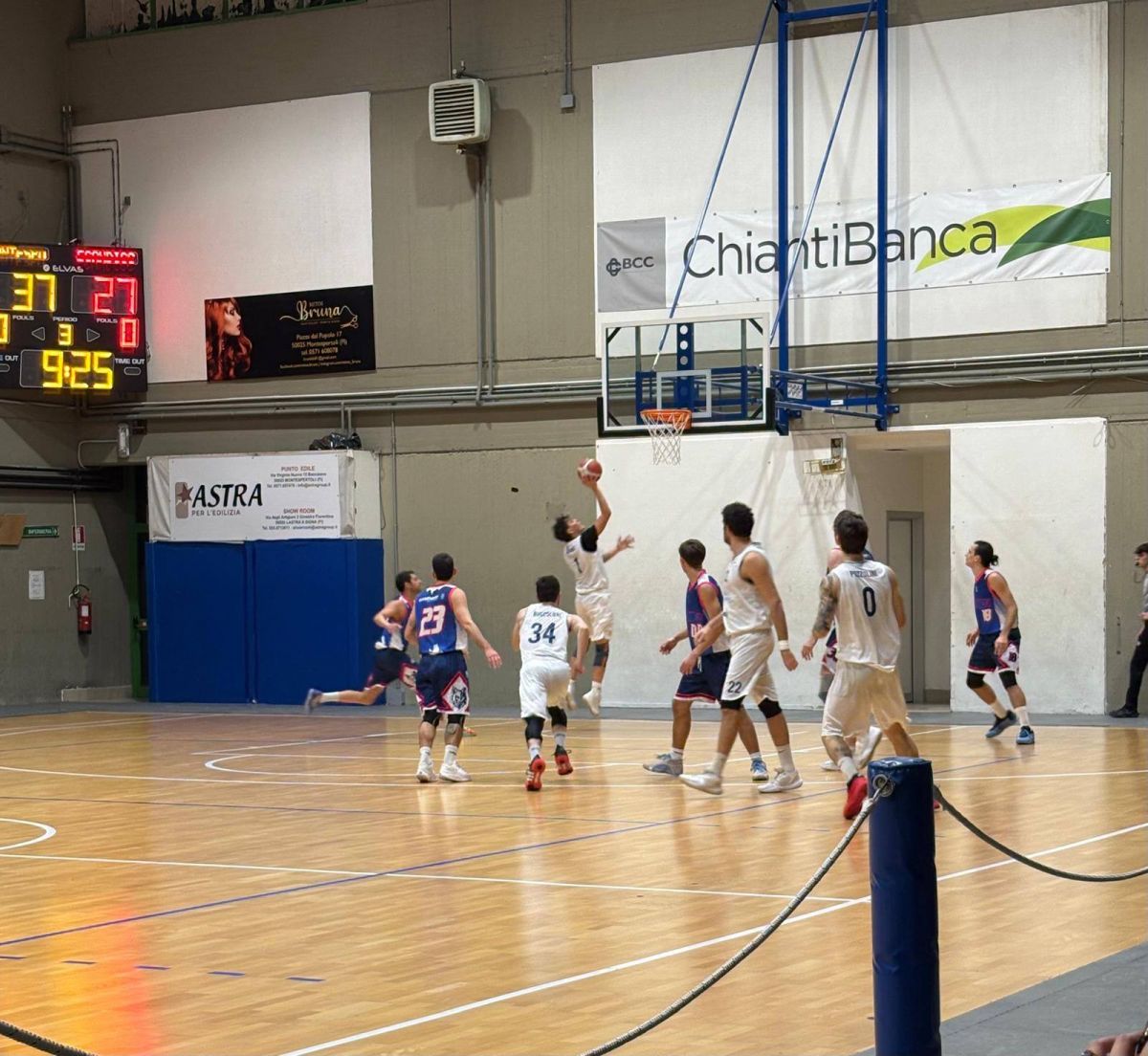Gli ospiti provano a rifarsi sotto nel secondo periodo, talvolta sfruttando qualche sbavatura difensiva dei ragazzi di Nesi, ma un ottimo Calvisi tiene i suoi sulla doppia cifra di vantaggio. Si va alla pausa lunga sul 37-27.